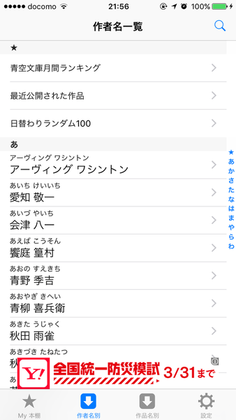 如果你本身知道很多日本文學家的話可以用「作家名」來搜尋小說▼